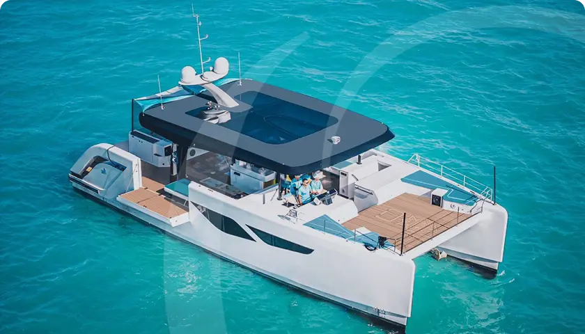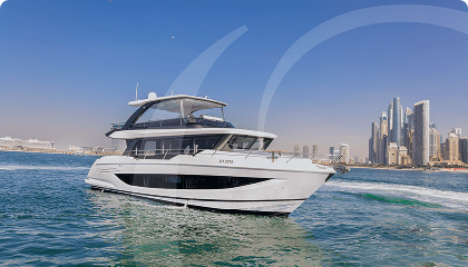 Features: Modern finishes, XL flybridge, bar area and lounge area